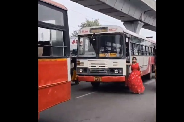 Hyderabad: హైదరాబాద్లో నడిరోడ్డుపై ఆర్టీసీ బస్సులో ప్రీ-వెడ్డింగ్ షూట్... ఇదిగో వీడియో