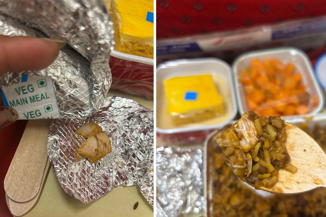 - ‘వెజ్మీల్’ అని స్పష్టంగా రాసివున్న ప్యాకెట్లో చికెన్ ముక్కలు