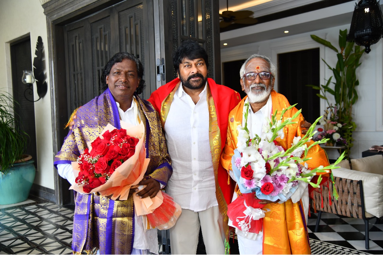 టాలీవుడ్ మెగాస్టార్ చిరంజీవిని దేశంలోనే రెండో అత్యున్నత పురస్కారం పద్మవిభూషణ్ తో కేంద్ర ప్రభుత్వం గౌరవించిన సంగతి తెలిసిందే. కేంద్రం ప్రకటన వచ్చినప్పటి నుంచి హైదరాబాదులోని చిరంజీవి నివాసం కోలాహలంగా మారింది. సినీ రంగానికి చెందిన ప్రముఖులు చిరంజీవి నివాసానికి వచ్చి ఆయనను అభినందిస్తున్నారు. ఈ క్రమంలో, చిరంజీవి ఇటీవల పద్మశ్రీ పురస్కారాలకు ఎంపికైన తెలంగాణకు చెందిన యక్షగాన కళాకరుడు గడ్డం సమయ్య, స్థపతి డాక్టర్ ఆనందచారి వేలును ప్రత్యేకంగా ఆహ్వానించి సత్కరించారు.