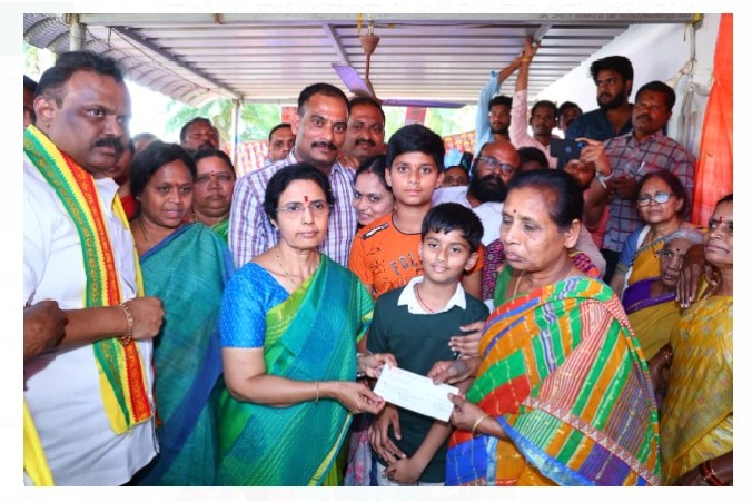 'నిజం గెలవాలి' కోసం విజయవాడ విమానాశ్రయానికి చేరుకున్న నారా భువనేశ్వరికి కృష్ణా జిల్లా పార్టీ నాయకులు, కార్యకర్తలు ఘనస్వాగతం పలికారు. అనంతరం రోడ్డు మార్గం ద్వారా మొదట రేపల్లె నియోజకవర్గానికి చేరుకున్నారు. చెరుకుపల్లి మండల కేంద్రంలో... పార్టీ కార్యకర్త కోట వెంకటేశ్వరరావు కుటుంబాన్ని భువనేశ్వరి పరామర్శించారు. 09-09-2023న చంద్రబాబు అరెస్టును తట్టుకోలేక గుండెపోటుతో వెంకటేశ్వరరావు (67) మృతి చెందారు. వెంకటేశ్వరరావు భార్య కోట విజయలక్ష్మి, కుమారులు సురేష్, రాజేష్, ఇతర కుటుంబ సభ్యులను పరామర్శించి, ధైర్యం చెప్పారు. వారి కుటుంబానికి రూ.3 లక్షల ఆర్థిక సాయాన్ని అందించారు.