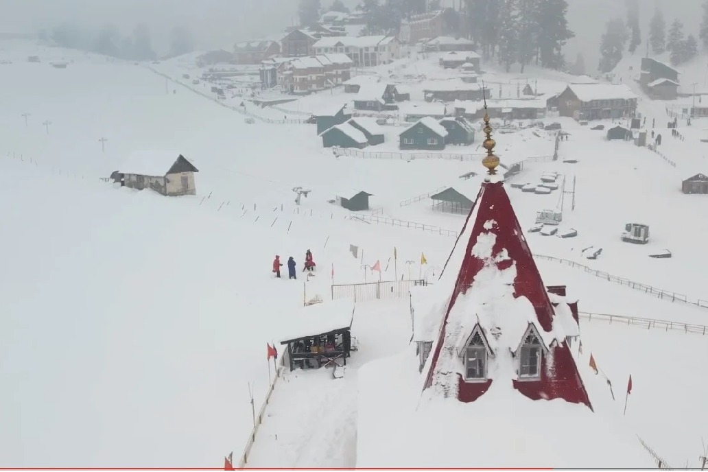 దేశంలో ప్రముఖ పర్యాటక కేంద్రం కశ్మీర్ లో కనిష్ఠ ఉష్ణోగ్రతలు నమోదవుతున్నాయి. హిమపాతంతో గుల్ మార్గ్ ను మంచు దుప్పటి కప్పేసింది. గడిచిన 72 గంటలుగా ఇక్కడ ఉష్ణోగ్రతలు మైనస్ లలోనే రికార్డవుతున్నాయి. అడుగులకొద్దీ పేరుకుపోయిన మంచుతో గుల్ మార్గ్ అంటార్కిటికాను తలపించేలా మారింది. వింటర్ లో స్కీయింగ్ కు గుల్ మార్గ్ పేరొందింది. ప్రపంచం నలుమూలల నుంచి పర్యాటకులు ఈ సీజన్ లో గుల్ మార్గ్ చేరుకుంటారు. మూడు రోజులుగా మంచు కురుస్తూనే ఉండడంతో టూరిస్టులు ఎంజాయ్ చేస్తున్నారు. డ్రోన్ కెమెరాతో ఓ టూరిస్టు రికార్డు చేసిన వీడియో ప్రస్తుతం సోషల్ మీడియాలో వైరల్ గా మారింది.