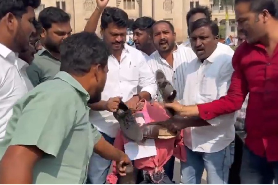 బీఆర్ఎస్ వర్కింగ్ ప్రెసిడెంట్ కేటీఆర్ తన బానిస కుక్కలతో కాంగ్రెస్ నేతలపై మొరిగిస్తే ఓయూ విద్యార్థులు తగిన గుణపాఠం చెబుతారని టీపీసీసీ ప్రచార కమిటీ కార్యనిర్వాహక సభ్యుడు, ఓయూ విద్యార్థి ఉద్యమ నాయకుడు కోట శ్రీనివాస్ హెచ్చరించారు. సీఎం రేవంత్ రెడ్డిపై బీఆర్ఎస్ నేత బాల్క సుమన్ చేసిన వ్యాఖ్యలను ఖండిస్తూ... ఆయన వ్యాఖ్యల వెనుక కేటీఆర్ ఉన్నాడని ఆరోపిస్తూ... కోట శ్రీనివాస్ ఆధ్వర్యంలో బీఆర్ఎస్ వర్కింగ్ ప్రెసిడెంట్ కేటీఆర్ దిష్టిబొమ్మను దగ్ధం చేశారు. ఈ సందర్భంగా మాట్లాడుతూ... రేవంత్ రెడ్డిపై ఇష్టారీతిన మాట్లాడిన బాల్క సుమన్.... కేటీఆర్కు బానిస అని ఆరోపించారు. అసెంబ్లీ ఎన్నికల్లో తెలంగాణ ప్రజలు ఓడించినా బీఆర్ఎస్ నాయకులకు బుద్ధి రాలేదన్నారు.