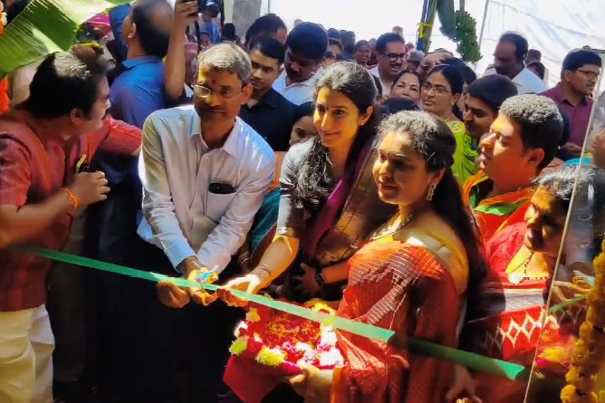 Nara Brahmani attends Weavershala inauguration in Autonagar
