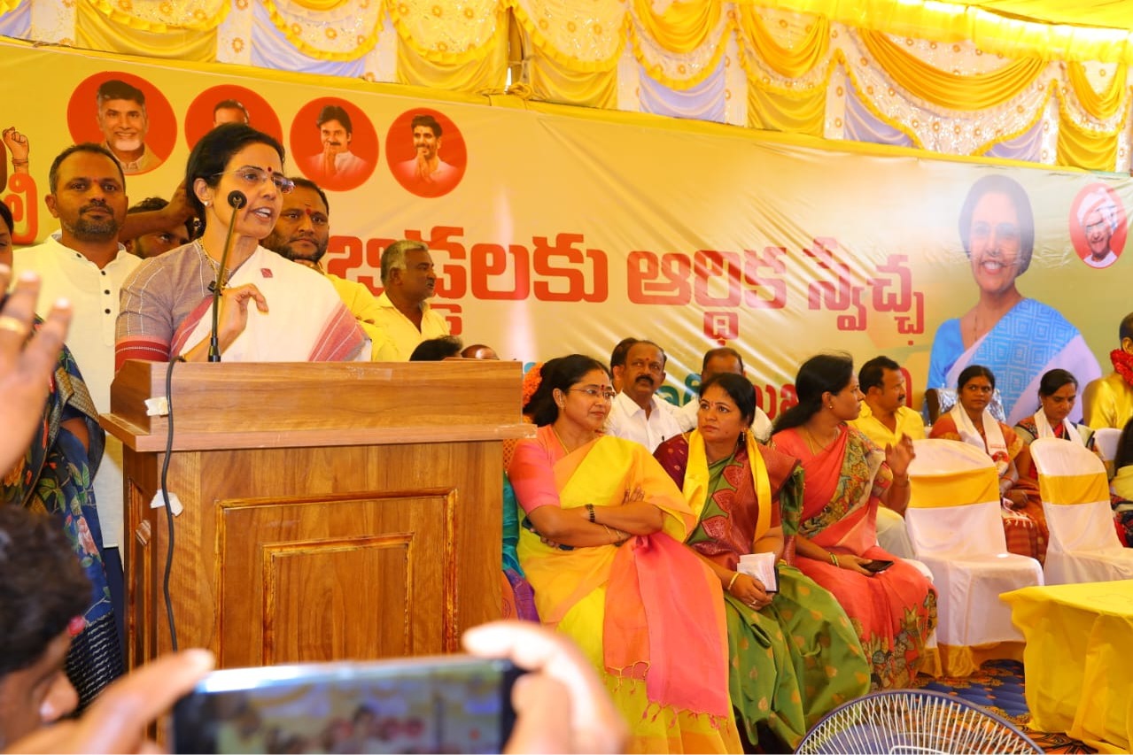 కుప్పం నారీమణులకు పేరు పేరునా నా నమస్కారాలు. ఒకప్పుడు స్త్రీని అబలగా చూసేవారు... వారిని వంటింటికే పరిమితం చేసేవారు. స్త్రీలకు గౌరవం, ధైర్యం, హక్కులు ఇచ్చి మహిళలను సమాజంలోకి తీసుకొచ్చిన వ్యక్తి అన్న ఎన్టీఆర్. 1986లో ఎన్టీఆర్ స్త్రీలకు ఆస్తిలో సమానహక్కును కల్పించి చరిత్ర సృష్టించారు. మహిళలకు తిరుపతిలో పద్మావతి యూనివర్సిటీని తీసుకొచ్చారు. స్థానిక సంస్థల ఎన్నికల్లో మహిళలకు రిజర్వేషన్లు అమలు చేశారు. ఆయనవల్లే మహిళలు నేడు రాజకీయాల్లో ముందుకెళుతున్నారు.