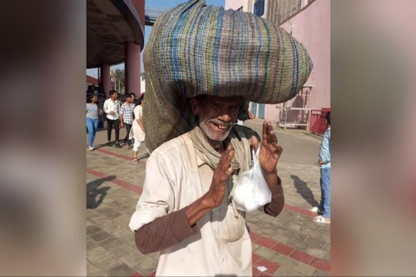- మాసిన దుస్తుల్లో నెత్తి మీద దుస్తుల మూటతో స్టేషన్కు వచ్చిన రైతు
