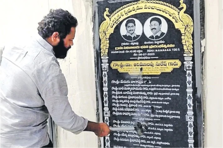 YSRCP: తనపేరు వేయలేదని.. శిలాఫలకాన్ని ధ్వంసం చేసిన వైసీపీ సర్పంచి