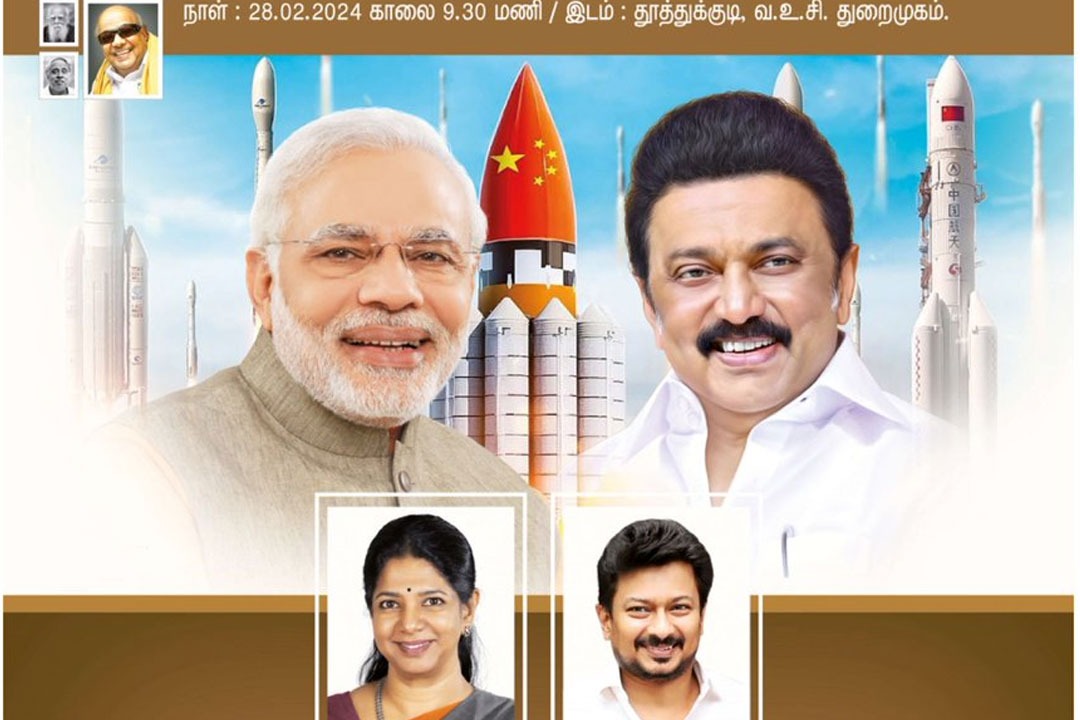 తమిళనాడులోని కులశేఖరపట్టణంలో ఇస్రో ఏర్పాటు చేసిన సెకండ్ లాంచ్ ప్యాడ్కు సంబంధించి దినపత్రికల్లో ఇచ్చిన ప్రకటన రాజకీయ చిచ్చు రేపింది. ఆ యాడ్లో ఓవైపు ప్రధాని మోదీ, మరోవైపు ముఖ్యమంత్రి స్టాలిన్ మధ్యలో ఇస్రో రాకెట్ ఉంది. అయితే, ఆ రాకెట్పై చైనా జెండా ఉండడం వివాదానికి కారణమైంది. తమిళనాడు పశుసంరక్షణశాఖ మంత్రి అనితా రాధాకృష్ణ వ్యక్తిగతంగా ఇచ్చిన ఈ ప్రకటనలో దీర్ఘకాలంగా పెండింగ్లో ఉన్న ప్రాజెక్టులను డీఎంకే ప్రభుత్వం ఎలా పూర్తి చేస్తున్నదీ చెప్పుకొచ్చారు.
