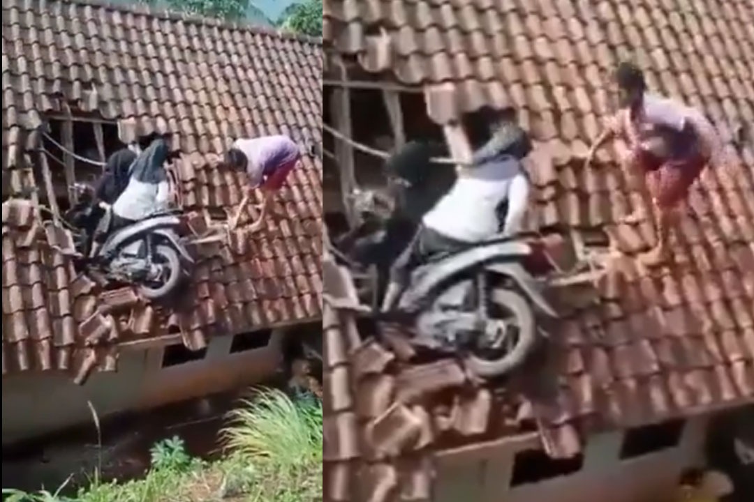 ప్రపంచంలో అప్పుడప్పుడు నమ్మశక్యం కాని విషయాలు జరుగుతూ ఉంటాయి కదా.. అలాంటి వాటిలో ఇదొకటి. ఈ వీడియో చూశాక మీ కళ్లను మీరు కాసేపు నమ్మలేరంటే అతిశయోక్తి కాదు. ఇండోనేషియాలో జరిగిందీ ఘటన. ఓ యువతి స్కూటర్‌పై మరో యువతిని ఎక్కించుకుని వేగంగా వెళ్తూ అదుపు తప్పి ఏకంగా ఓ ఇంటిపైకి ఎక్కేసింది.