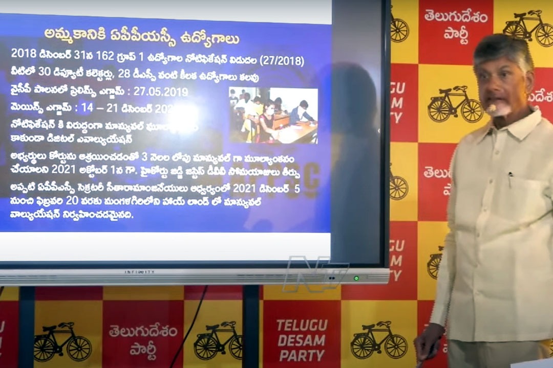తమ ప్రభుత్వ హయాంలో నిజాయతీ కలిగిన వ్యక్తులను చైర్మన్గా నియమించామని వివరించారు. ఇప్పుడేమో బోర్డు పునరావాస కేంద్రంగా మారిందని, ఉద్యోగాలను అమ్మేసుకుంటున్నారని ఆవేదన వ్యక్తం చేశారు. యువత ఆశలను చిదిమేశారని ఆగ్రహం వ్యక్తం చేశారు. నిక్కచ్చిగా వ్యవహరించిన ఉదయ్ భాస్కర్ను మెడపట్టి గెంటేశారని, జగన్కు అనుకూలంగా వ్యవహరించిన గౌతం సవాంగ్ను నియమించారని చంద్రబాబు విమర్శించారు. సవాంగ్ తప్పుడు అఫిడవిట్లతో కోర్టుల్ని తప్పుదోవ పట్టించారని ఆగ్రహం ఆరోపించారు.
