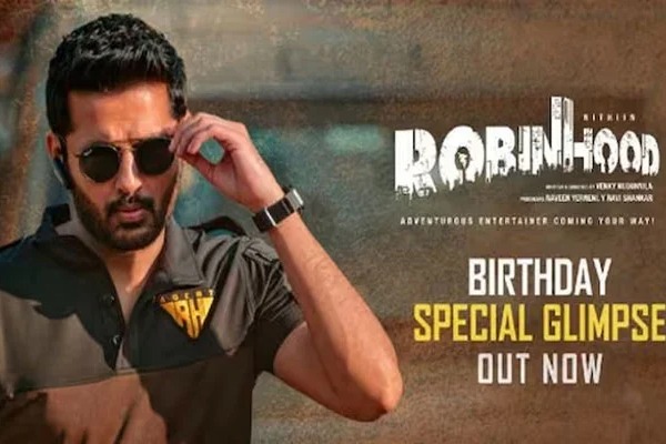 టాలీవుడ్ యంగ్ హీరో నితిన్, వెంకీ కుడుముల కాంబోలో తెరకెక్కుతున్న తాజా చిత్రం ‘రాబిన్ హుడ్’. శనివారం నితిన్ బర్త్డే సందర్భంగా చిత్ర యూనిట్ ఈ మూవీ నుంచి గ్లింప్స్ విడుదల చేసింది. ఈ స్పెషల్ గ్లింప్స్ ద్వారా చిత్ర బృందం ఒక ట్విస్ట్ కూడా ఇచ్చింది. ఏజెంట్ 'రాబిన్ హుడ్' అంటూ అసలు క్యారెక్టర్ను రిలీజ్ చేసింది. చివరిగా గణతంత్ర దినోత్సవం సందర్భంగా ఈ మూవీ నుంచి టైటిల్ గ్లింప్స్ విడుదల చేయగా.. అందులో నితిన్ డబ్బు కోసం దోపిడీలు చేస్తున్నట్లు చూపించారు.