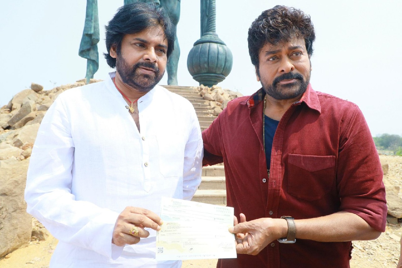 మెగాస్టార్ చిరంజీవి జనసేన పార్టీకి భారీ విరాళం ప్రకటించారు. రూ.5 కోట్ల చెక్ ను ఇవాళ జనసేనాని పవన్ కల్యాణ్ కు అందజేశారు.
