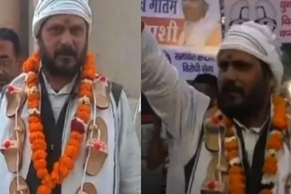 Pandit Keshav Dev: మెడలో చెప్పుల దండతో లోక్సభ అభ్యర్థి ఎన్నికల ప్రచారం..!