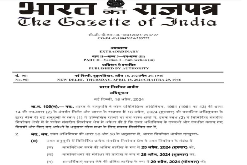 ప్రభుత్వ గెజిట్ ప్రకారం, ఈ దశ నామినేషన్ల స్వీకరణకు ఏప్రిల్ 25 చివరి తేదీ. ఏప్రిల్ 26న నామినేషన్ల పరిశీలన చేపట్టనున్నారు. నామినేషన్ల ఉపసంహరణకు ఏప్రిల్ 29 చివరి తేదీ కాగా, మే 13న 96 స్థానాలకు పోలింగ్ నిర్వహించనున్నారు. మొత్తం ఏడు దశల్లో ఈ సార్వత్రిక ఎన్నికలు జరగనున్న విషయం తెలిసిందే. తొలి దశలో అత్యధికంగా 102 స్థానాలకు ఎన్నికలు జరుగుతాయి. చివరి దశలో 57 స్థానాలకు పోలింగ్ నిర్వహిస్తారు. జూన్ 4న ఎన్నికల ఫలితాలు విడుదలవుతాయి.