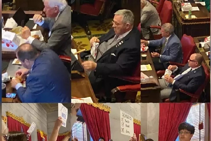 స్కూలు ఆవరణలోకి టీచర్లు తుపాకులు తీసుకెళ్లేలా అనుమతించే బిల్లుకు అమెరికాలోని టెన్నెస్సీ స్టేట్ హౌస్ ఆమోదం తెలిపింది. ఈ వివాదాస్పద బిల్లుపై ఏకంగా సభలోనే నిరసనలు వ్యక్తమయ్యాయి. బిల్లుపై చర్చ జరుగుతుండడంతో పలువురు టీచర్లు, స్టూడెంట్లు సందర్శకులుగా సభకు హాజరయ్యారు. బిల్లును పాస్ చేస్తూ సభలో స్పీకర్ తీర్మానం చదువుతుండగానే సందర్శకుల గ్యాలరీ నుంచి జనం పెద్దపెట్టున నినాదాలు చేశారు. ‘బ్లడ్ ఆన్ యువర్ హ్యాండ్స్’ అంటూ నినాదాలు చేస్తూ, ప్లకార్డులు ప్రదర్శిస్తూ సభా కార్యకలాపాలకు అంతరాయం కలిగించారు. దీంతో స్పీకర్ స్పందిస్తూ.. సందర్శకుల గ్యాలరీ ఖాళీ చేయించాలని భద్రతా సిబ్బందిని ఆదేశించారు.