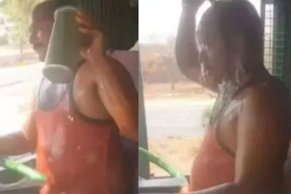 అయితే, ఓ ట్రక్ డ్రైవర్ వేసవి తాపం నుంచి ఉపశమనం పొందేందుకు వినూత్న ఆలోచన చేశాడు. డ్రైవింగ్ సీటు పక్కనే ఒక బకెట్లో చల్లటి నీరు పెట్టుకున్నాడు. అందులో ఒక మగ్ ఉంచి.. డ్రైవింగ్ చేస్తున్న సమయంలో వేడిగా అనిపించినప్పుడల్లా మగ్ను ముంచడం, పైన వాటర్ పోసుకోవడం చేశాడు. ఇలా వేసవి తాపం నుంచి ఉపశమనం కోసం వెరైటీ ఉపాయం ఆలోచించిన ట్రక్ డ్రైవర్ తాలూకు వీడియో ఇప్పుడు నెట్టింట వైరల్ అవుతోంది. ఈ వీడియోను "45-50 డిగ్రీల ఉష్ణోగ్రతలో బస్సు లేదా ట్రక్ నడిపించడం అనేది ఎంత కష్టం" అనే క్యాప్షన్ తో పోస్ట్ చేయడం జరిగింది.