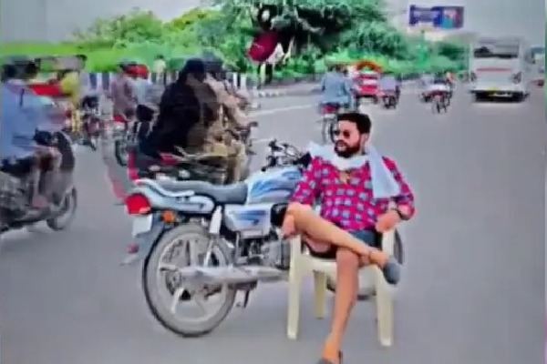 delhi: రోడ్డుకు అడ్డంగా టూవీలర్ పెట్టి.. కుర్చీలో కూర్చొని పోజు కొట్టాడు!
