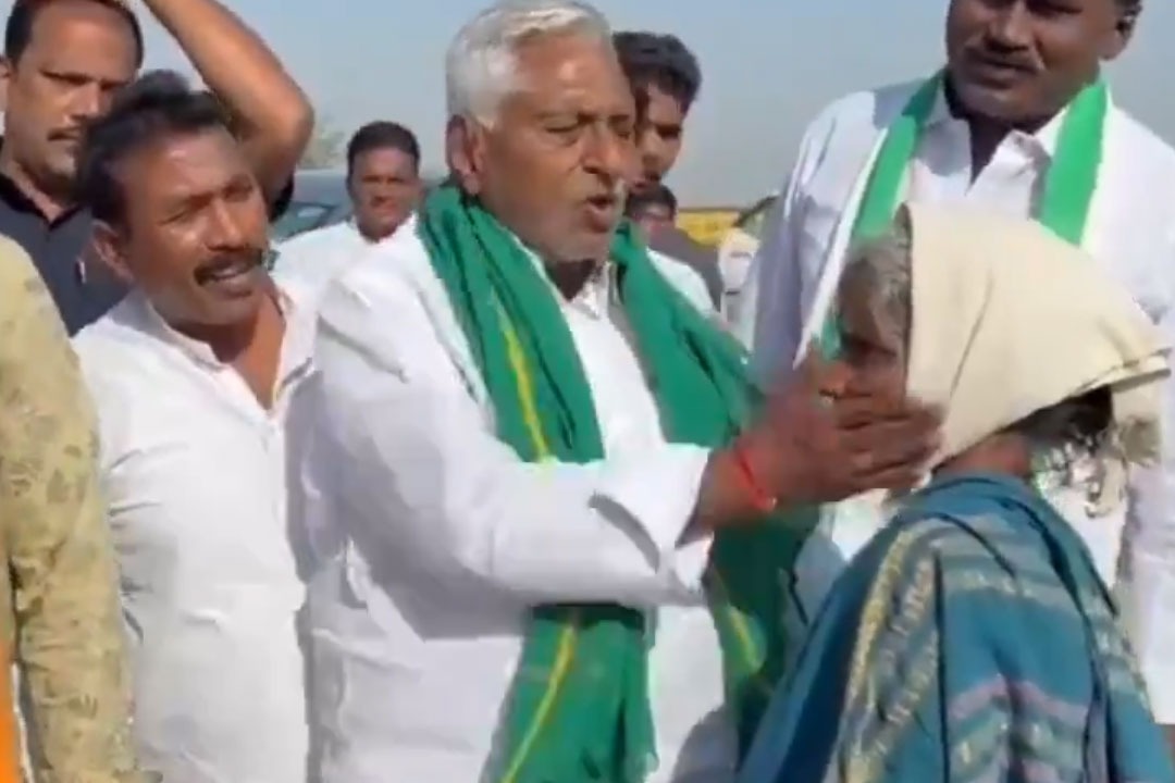 Telangana Congress Candidate Jeevan Reddy Slaps Woman During Campaign