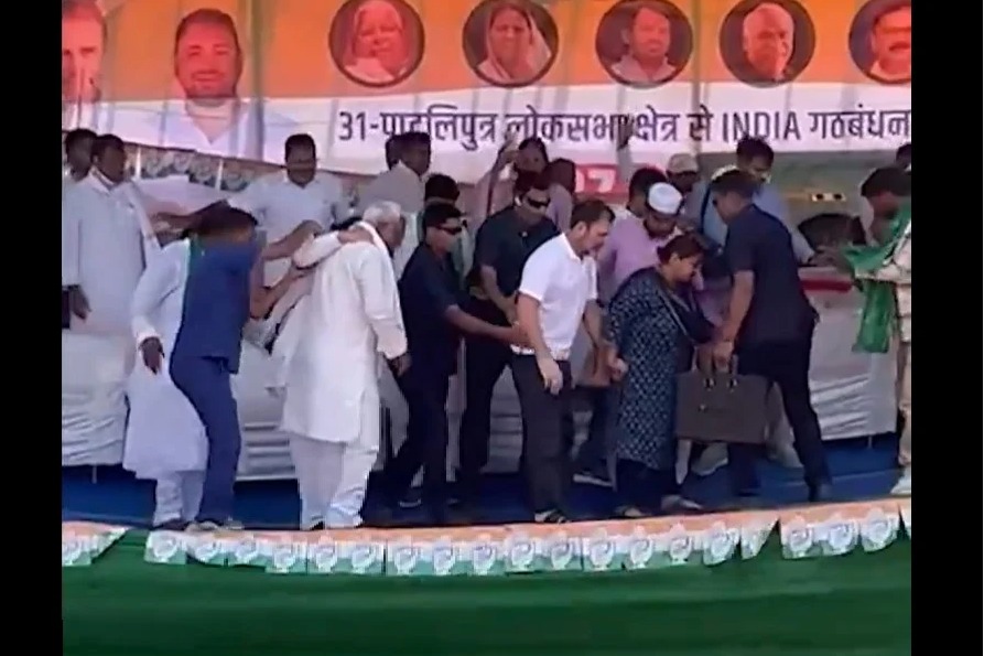 రాహుల్ గాంధీ, తేజస్వి యాదవ్, మీసా భారతి తదితరులు వేదిక పైకి చేరుకున్నారు. ఈ సమయంలో వేదిక ఒక్కసారిగా కాస్త కిందకు పడిపోయింది. దీంతో రాహుల్ గాంధీ సెక్యూరిటీ సిబ్బంది అతనిని కిందకు దించే ప్రయత్నాలు చేశారు. దానికి ఆయన వద్దని చెప్పారు. అదృష్టవశాత్తు ఎవరికీ గాయాలు కాలేదు. స్టేజ్ కూలిన వీడియో నెట్టింట వైరల్‌గా మారింది.