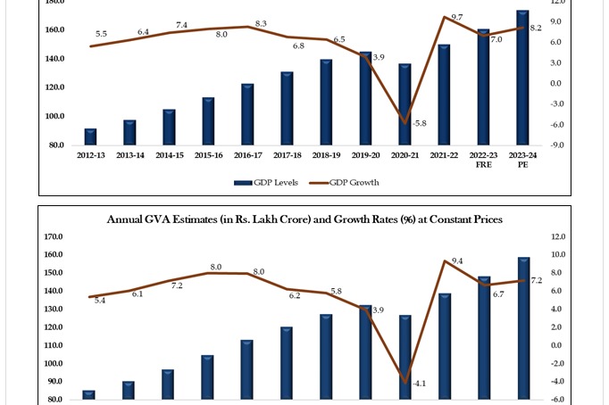 శుక్రవారం ఎన్ఎస్ఓ విడుదల చేసిన డేటా ప్రకారం, రంగాల వారీగా విశ్లేషిస్తే రియల్ గ్రాస్ వ్యాల్యూ 2022-23 ఆర్థిక సంవత్సరంలోని 6.7 శాతంతో పోలిస్తే 2023-24 ఆర్థిక సంవత్సరంలో 7.2 శాతానికి పెరిగింది. ఈ వృద్ధి భారత ఆర్థిక వ్యవస్థను 3.5 ట్రిలియన్ డాలర్ల వైపు నడిపించింది. రానున్న కొన్నేళ్లలో భారత ఆర్థిక వ్యవస్థ 5 ట్రిలియన్ డాలర్లకు చేరుకోవడానికి ఇది ఉపకరిస్తుందని భావిస్తున్నారు.
