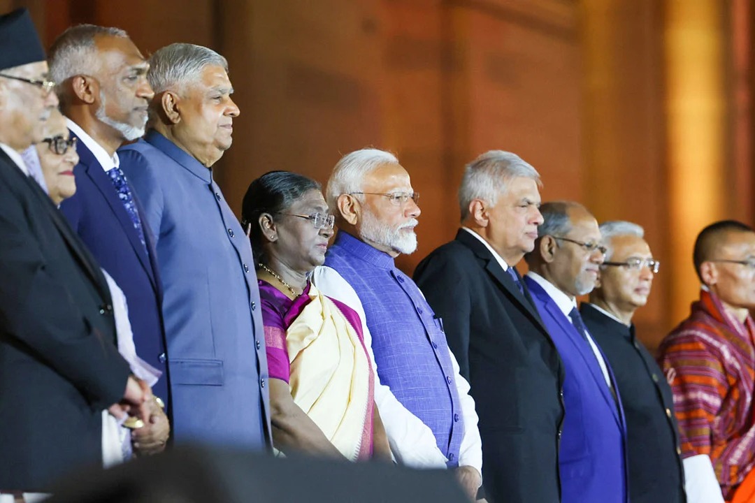 రికార్డు స్థాయిలో ముచ్చటగా మూడోసారి దేశ ప్రధానమంత్రిగా నరేంద్ర మోదీ ఆదివారం రాత్రి ప్రమాణస్వీకారం చేశారు. వేడుకగా జరిగిన ఈ కార్యక్రమంలో 30 మంది కేబినెట్ మంత్రులు, ఐదుగురు స్వతంత్ర హోదాకలిగిన సహాయ మంత్రులు, 36 మంది సహాయ మంత్రులుగా ప్రమాణం చేశారు. అట్టహాసంగా జరిగిన ఈ కార్యక్రమానికి దేశ విదేశాలకు చెందిన వేలాది మంది అతిథులు హాజరయ్యారు. ముఖ్యంగా భారత్ పొరుగున ఉన్న ఏడు దేశాల అధిపతులు విచ్చేశారు. హిందూ మహాసముద్ర ప్రాంత దేశాల అగ్రనేతలు మోదీ ప్రమాణ స్వీకారోత్సవానికి హాజరయ్యారు. వీరిలో మాల్దీవుల అధ్యక్షుడు మహమ్మద్ ముయిజ్జు, నేపాల్ ప్రధాని పుష్ప కమల్ దహల్, శ్రీలంక అధ్యక్షుడు రణిల్ విక్రమసింఘే, బంగ్లాదేశ్ ప్రధాని షేక్ హసీనా, మారిషస్ ప్రధాని ప్రవింద్ కుమార్ జుగ్నాథ్, భూటాన్ ప్రధాని షెరింగ్ టోబ్గే, సీషెల్స్ వైస్ ప్రెసిడెంట్ అహ్మద్ అఫీఫ్ ఈ వేడుకకు హాజరయ్యారు.