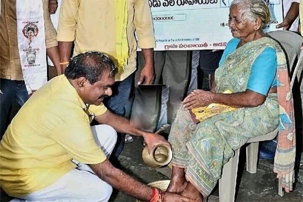 - ఈ క్రమంలో వృద్ధులు, వికలాంగుల కాళ్లు కడిగిన మంత్రి నిమ్మల