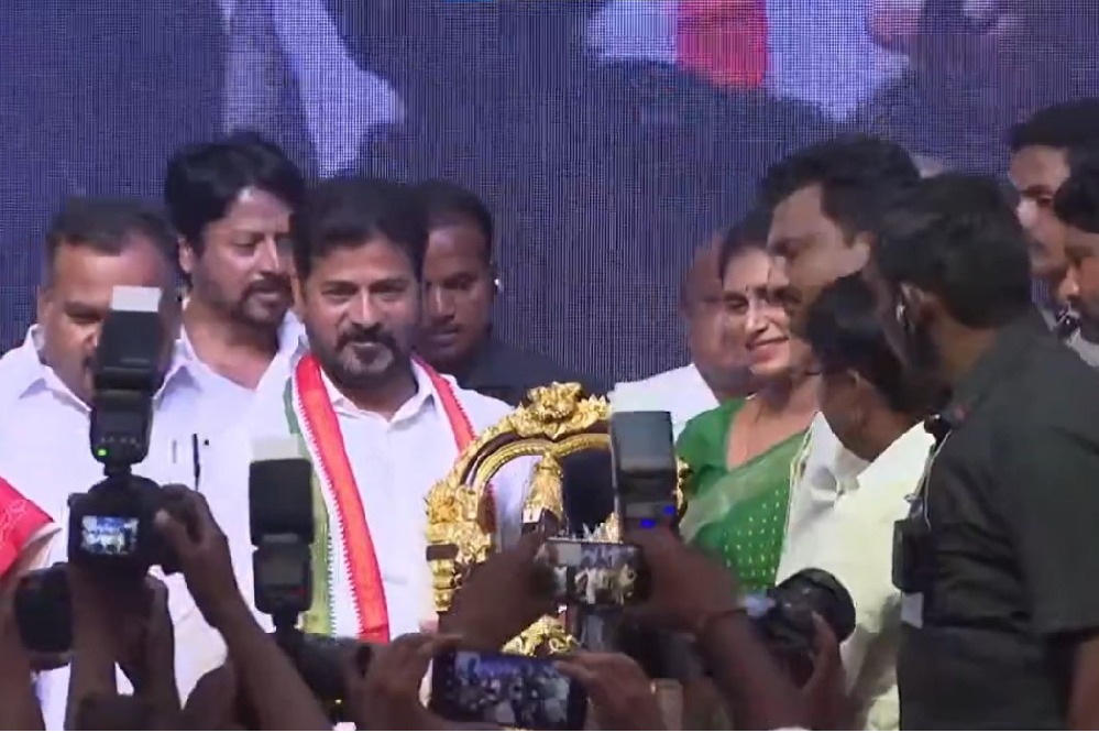 Revanth Reddy: రేవంత్ రెడ్డికి మెమొంటో ఇచ్చిన వైఎస్ షర్మిల