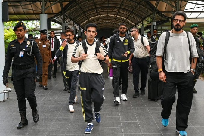 ఈ మధ్యాహ్నం భారత్ నుంచి బయల్దేరిన టీమిండియా ఈ సాయంత్రం శ్రీలంకలోని పల్లెకెలే చేరుకుంది. టీమిండియా ఆటగాళ్లకు విమానాశ్రయంలో సంప్రదాయ స్వాగతం లభించింది. అక్కడ్నించి ఆటగాళ్లు ప్రత్యేక బస్సులో నేరుగా తమకు కేటాయించిన హోటల్ కు చేరుకున్నారు.