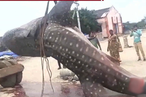 - మచిలీపట్నం వద్ద మత్స్యకారుల వలలో 1.5 టన్నుల సొరచేప