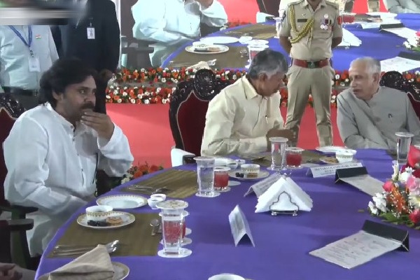 ఈ కార్యక్రమంలో నారా లోకేశ్ ఎంతో ఉల్లాసంగా కనిపించారు. పలువురు టీడీపీ మంత్రులను గవర్నర్ కు పరిచయం చేశారు.