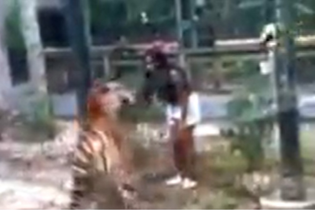 Woman nearly bitten by Tiger after climbing over fence at New Jersey zoo.