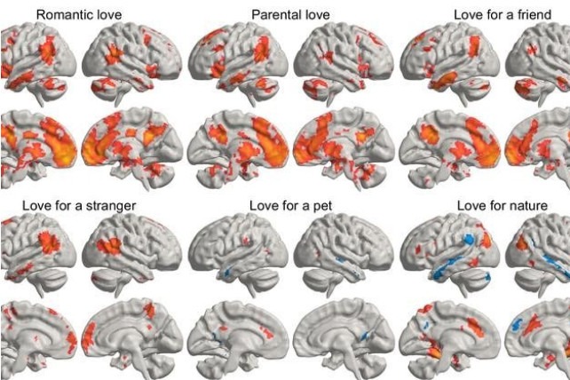 తాజాగా, ఫిన్లాండ్ కు చెందిన ఆల్టో యూనివర్సిటీ పరిశోధకులు చేపట్టిన అధ్యయనం ప్రేమ గురించి కొత్త కోణాన్ని ఆవిష్కరించింది. విభిన్న రకాల ప్రేమలు మెదడులోని వేర్వేరు ప్రాంతాలను కాంతివంతం చేస్తాయట. ఉదాహరణకు ప్రియురాలిపై ప్రేమ మెదడులోని ఒక భాగాన్ని ప్రకాశవంతం చేస్తే... తల్లిదండ్రుల ప్రేమ మెదడులోని మరో ప్రాంతాన్ని వెలిగిస్తుందట.