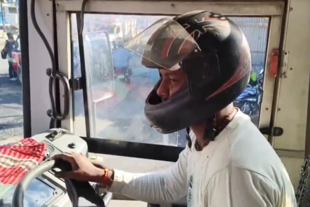 Bengal Bandh: బెంగాల్ లో హెల్మెట్ పెట్టుకుని బస్సు నడుపుతున్న డ్రైవర్లు.. వైరల్ వీడియో
