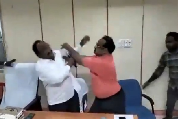 Officers made a spectacle of themselves literally coming to blows in front of councillors in #Pithapuram constituency #Kakinada #AndhraPradesh; what started as a verbal altercation, got heated up into mutual physical assault between Commissioner Kanakarao and DEE Bhavani Shankar pic.twitter.com/UdCrsC9HIe