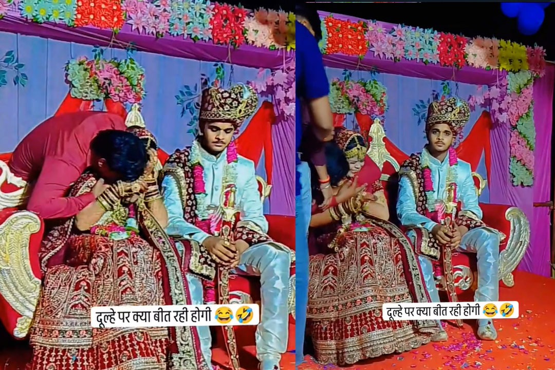 వైరల్ అవుతున్న ఈ వీడియోలో అలంకరించిన వేదికపై పెళ్లికొడుకు, పెళ్లి కూతురు చెరో కుర్చీలో పక్కపక్కనే కూర్చుని ఉన్నారు. స్టేజిపైకి వచ్చిన ఓ యువకుడు పెళ్లి కుమార్తెను గట్టిగా పట్టుకుని ముద్దులు పెడుతూ హత్తుకుని ఏడ్చేశాడు. ఆమె వదిలించుకునే ప్రయత్నం చేసినా అతడు పట్టువిడవకుండా ముద్దులు పెడుతూనే ఉన్నాడు. అది చూసిన పెళ్లికొడుకు ముఖ కవళికలు మారిపోయాయి. భావ రహితంగా అటూఇటూ పిచ్చి చూపులు చూస్తూ ఉండిపోవడం తప్ప ఏమీ చేయలేకపోయాడు. చివరికి ఇద్దరు వ్యక్తులు స్టేజిపైకి వచ్చి అతడిని విడిపించారు.