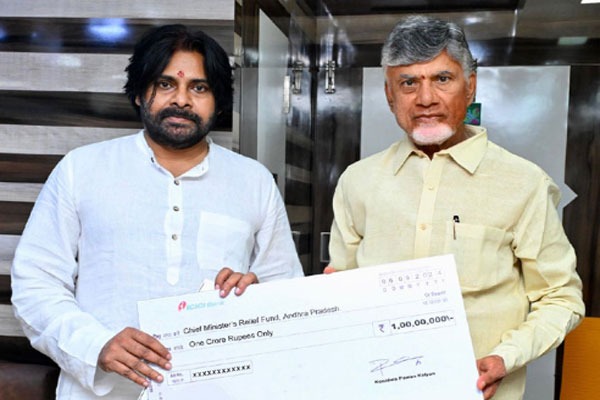 - సీఎం సహాయ నిధికి రూ.1కోటి చెక్ అందజేసిన జనసేనాని