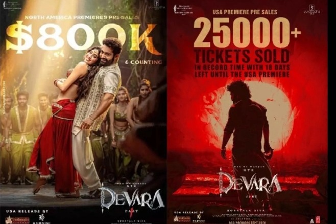 ఇప్పటికే విడుదలైన గ్లింప్స్, ఫస్ట్ సింగిల్... ఈ సినిమాపై అంచనాలను భారీగా పెంచాయి. 'దేవర 1' ఈ నెల 27న విడుదల అవుతోంది. మరోవైపు ఈ సినిమా విడుదల కాకముందే బాక్సాఫీస్ ను షేక్ చేస్తోంది. అమెరికాలో 'దేవర' దుమ్మురేపుతోంది. ఈ సినిమా ప్రీమియర్ షో టికెట్లు హాట్ కేకుల్లా అమ్ముడుపోయాయి. ఇప్పటికే 25 వేల టికెట్లు అమ్ముడుపోయి... 8 లక్షల డాలర్లను వసూలు చేశాయి.