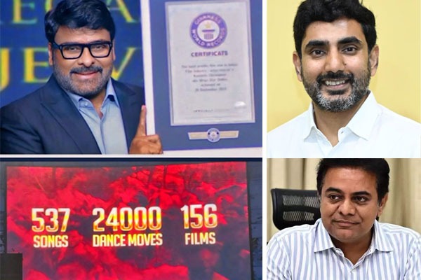 "గిన్నిస్ బుక్ రికార్డుల్లోకి ఎక్కిన మెగాస్టార్ చిరంజీవి గారికి అభినందనలు. చిరు చిందేస్తే అభిమానులకు పూనకాలే. 156 సినిమాల్లో నటించి 537 పాటలకు డ్యాన్స్ చేసి మొత్తం 24 వేల స్టెప్పులేసి ప్రేక్షకులతో స్టెప్పులేయించారు చిరంజీవి గారు. ఆయనకు గిన్నిస్ బుక్ ఆఫ్ వరల్డ్ రికార్డ్స్ లో చోటు దక్కడం తెలుగు వారికి గర్వకారణం" అని లోకేశ్ తన ట్వీట్లో రాసుకొచ్చారు.