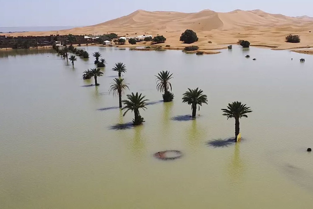 ఈ ఏడాది సెప్టెంబరులో కురిసిన వర్షాలు కొన్ని దశాబ్దాల కాలంలో అత్యధికమని మొరాకో ప్రభుత్వం తెలిపింది. ముఖ్యంగా దేశ ఆగ్నేయ భాగంలో ఉన్న రబాత్ అనే గ్రామంలో ఒక రోజులోనే ఏకంగా 4 అంగుళాల మేర వర్షం కురిసిందని వివరించింది. మెర్జౌగా అనే గ్రామంలో కూడా భారీ వర్షపాతం నమోదైందని తెలిపింది. సాధారణంగా ఏడాది మొత్తం కలిపి 10 అంగుళాల వర్షపాతం మాత్రమే నమోదవుతుంది. అలాంటి ఇంత తక్కువ సమయంలో భారీ వర్షం నమోదవడం పట్ల స్థానికులు ఆశ్చర్యానికి గురవుతున్నాయి. పెద్ద ఎత్తున తరలివెళ్లి ఎడారిలో నీటిని వీక్షిస్తున్నారు. వరుసగా ఆరు సంవత్సరాల కరవు తర్వాత ఈ భారీ వర్షం పడిందని చెబుతున్నారు.
