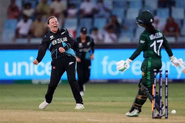 కివీస్ బౌలర్లలో స్పిన్నర్ అమేలియా కెర్ 3 వికెట్లు పడగొట్టగా, ఈడెన్ కార్సన్ 2, లీ తహుహు ఒక వికెట్ తీశారు. అంతకుముందు మొదట బ్యాటింగ్ చేసిన న్యూజిలాండ్కు ఓపెనర్లు సుజీ బేట్స్ (28), జార్జియా ప్లిమ్మర్ (17) తొలివికెట్కు 41 పరుగులు జోడించి మంచి భాగస్వామ్యం అందించారు.