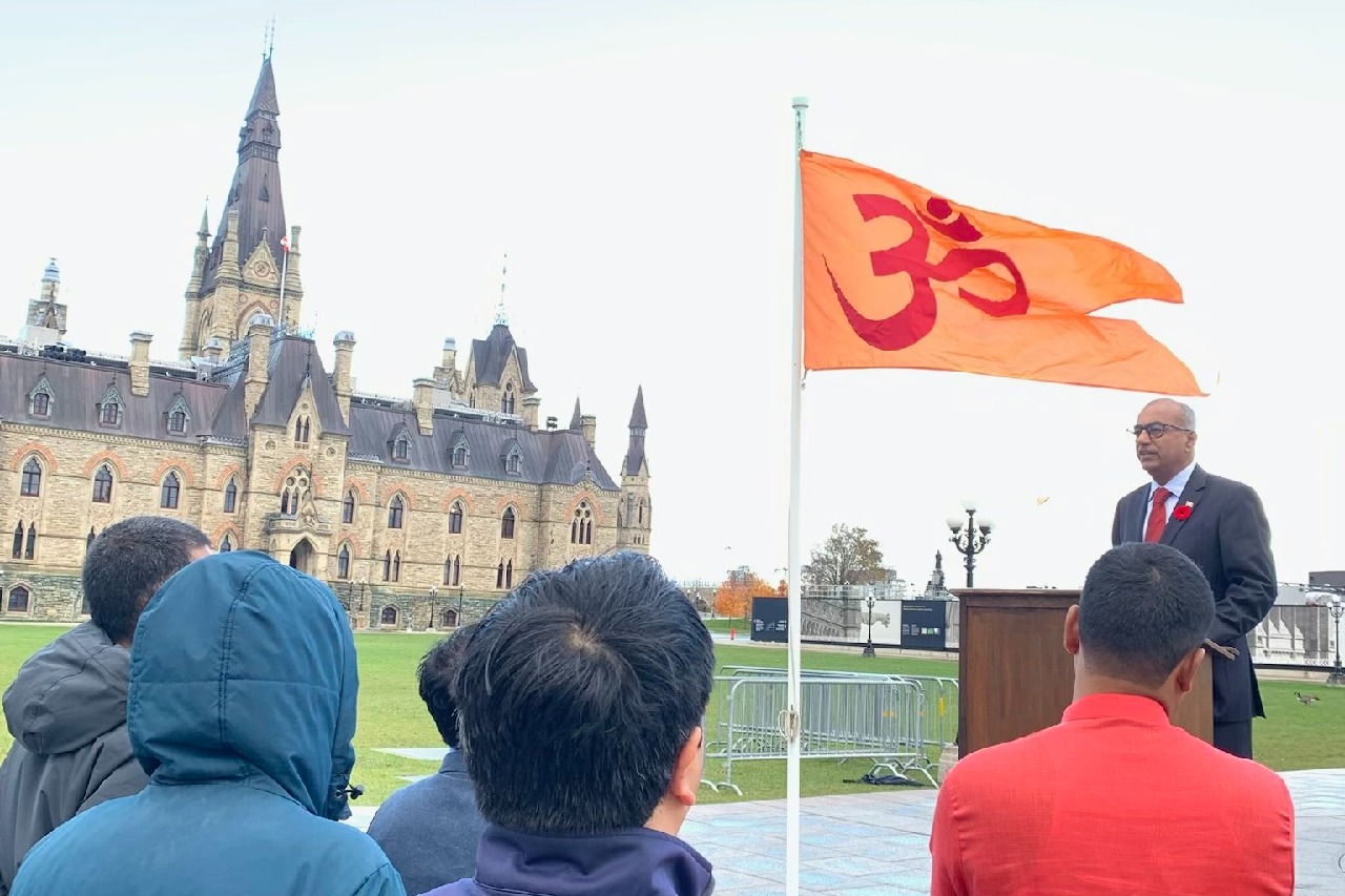 భారత సంతతికి చెందిన కెనడా ఎంపీ చంద్ర ఆర్య కెనడా పార్లమెంట్ వెలుపల 'ఓం' గుర్తు కలిగిన కాషాయ జెండాను ఎగురవేశారు. నవంబర్ నెలలో హిందూ హెరిటేజ్ మాసాన్ని పురస్కరించుకొని ఆయన హిందూ జెండాను ఎగురవేశారు. ఈ సందర్భంగా అధిక సంఖ్యలో హిందూ కెనడియన్లు రాజకీయాల్లో భాగస్వామ్యం కావాలని పిలుపునిచ్చారు. కెనడా రాజకీయ రంగంలో మన ప్రాతినిధ్యం చెప్పుకోదగినంతగా లేదన్నారు.