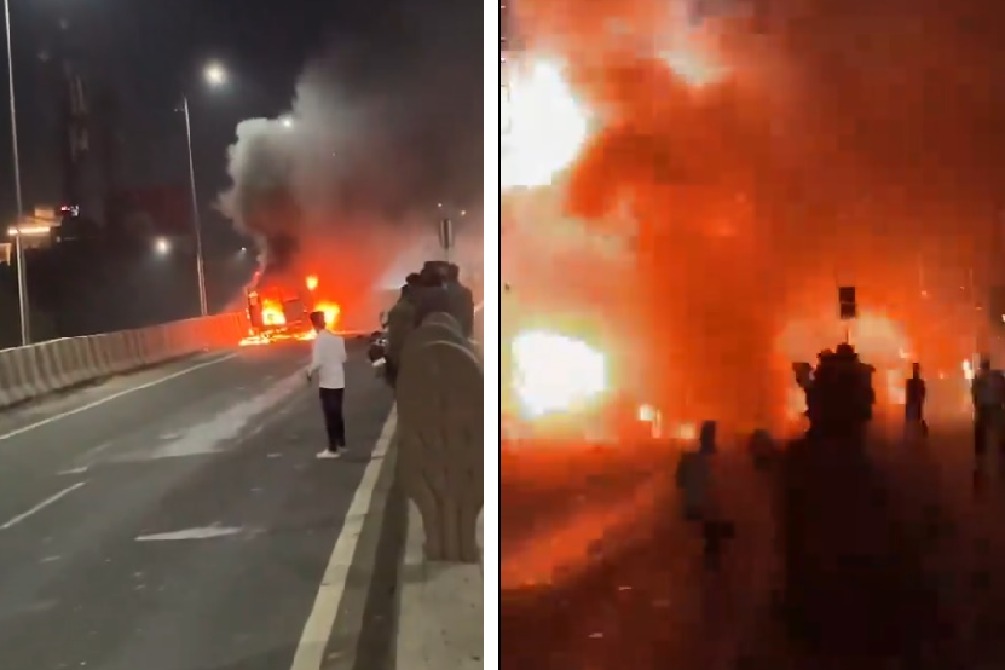 జల్గావ్ జిల్లాలోని దాదా వాడి ప్రాంతానికి చెందిన ఓ గర్భిణికి పురుటి నొప్పులు రావడంతో కుటుంబ సభ్యులు అంబులెన్స్ కు ఫోన్ చేశారు. గర్భిణితో పాటు ఆమె కుటుంబ సభ్యులు కూడా అంబులెన్స్ లో ఆసుపత్రికి బయలుదేరారు. మార్గమధ్యంలో అంబులెన్స్ ఇంజిన్ లో నుంచి పొగలు రావడంతో డ్రైవర్ అప్రమత్తమయ్యాడు. అంబులెన్స్ ను రోడ్డు పక్కకు ఆపి కిందకు దిగాడు. గర్భినిణి, ఆమె కుటుంబ సభ్యులను కూడా దిగిపొమ్మని చెప్పాడు. వారంతా దిగి దూరంగా వెళ్లిన కాసేపటికే అంబులెన్స్ లో మంటలు రేగాయి. అందులోని ఆక్సిజన్ సిలిండర్ భారీ శబ్దంతో పేలిపోయింది. దీంతో భారీ ఎత్తున మంటలు ఎగసిపడ్డాయి. పేలుడు ధాటికి చుట్టుపక్కల ఇళ్లల్లో కిటికీలు పగిలిపోయాయి. డ్రైవర్ అప్రమత్తంగా వ్యవహరించడంతో ప్రాణనష్టం తప్పింది.
