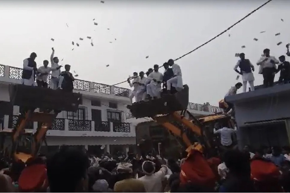 - జేసీబీలపై నిల్చుని మరీ నోట్లు గాల్లోకి విసిరిన వైనం