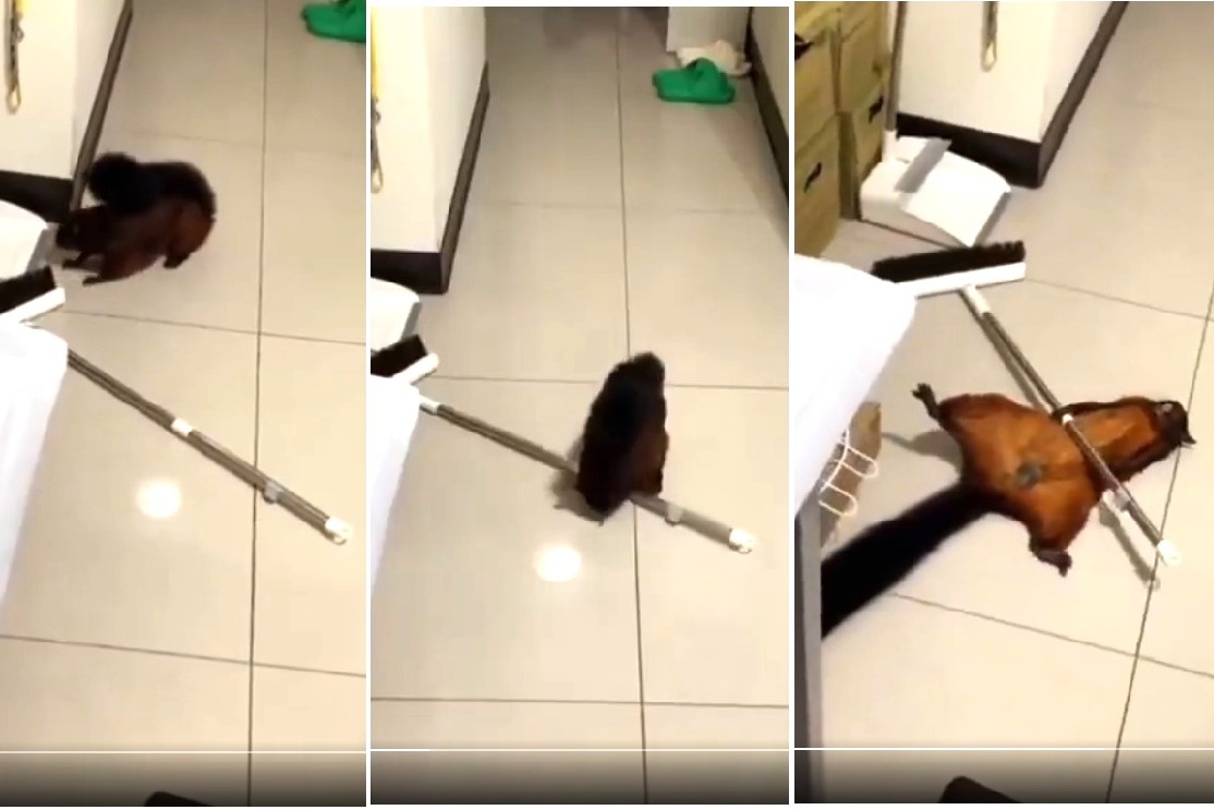 - ఓ పెంపుడు ఉడుత ఇంట్లో ఆడుకుంటూ... ప్లాస్టిక్ చీపురును కింద పడేసింది. అక్కడితో ఊరుకోకుండా... అదేదో తనపైనే పడినట్టు చూపేలా ప్లాన్ చేసుకుంది. మెల్లగా వచ్చి ఆ చీపురును పైకి లేపి తనపై వేసుకుంది. అది కూడా చాలదన్నట్టు దాన్ని తన మెడపైకి జరుపుకొంది. ఆ తర్వాత దెబ్బతగిలి పడిపోయినట్టుగా కాళ్లు బార్లా చాపి ఫోజు పెట్టింది.