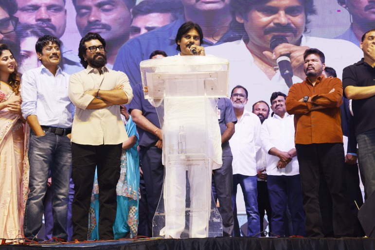 అటువైపు పార్వతీపురం వెళ్లండి... మన్యం ప్రాంతం అద్భుతంగా ఉంటుంది. ఏపీలో ఉన్న లొకేషన్లను అందరికీ చూపించండి... మీకు సౌకర్యాలు కల్పిస్తాం. మా మంత్రి దుర్గేశ్ గారికి కూడా చెబుతున్నాను. ఈ సందర్భంగా... తెలుగు చిత్ర పరిశ్రమకు ఆంధ్రప్రదేశ్ ప్రభుత్వం అండగా ఉంటుందని తెలియజేస్తున్నాను. మరొక్కమారు మనందరికీ ఇష్టమైన రామ్ చరణ్ కు హృదయపూర్వకంగా శుభాకాంక్షలుతెలియజేస్తున్నాను" అని పవన్ కల్యాణ్ పేర్కొన్నారు.