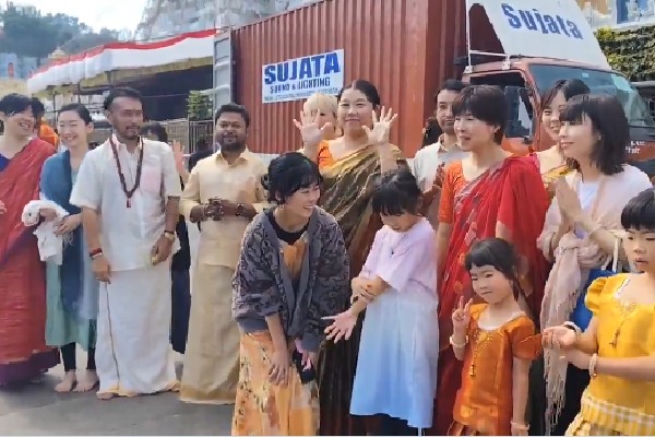 తాజాగా, కొందరు జపాన్ దేశస్తులు తిరుమలలో సందడి చేశారు. భారత సంప్రదాయాలను ప్రతిబించేలా దుస్తులు ధరించిన ఆ జపనీయులు తిరుమల వెంకన్నను దర్శించుకున్నారు. జపాన్ వాళ్లు చీరలు, పంచె కట్టులో రావడంతో ఇతర భక్తులు ఎంతో ఆసక్తిగా తిలకించారు. జపాన్ భక్త బృందంలో చిన్న పిల్లలు కూడా ఉన్నారు. దీనికి సంబంధించిన వీడియో సామాజిక మాధ్యమాల్లో సందడి చేస్తోంది.