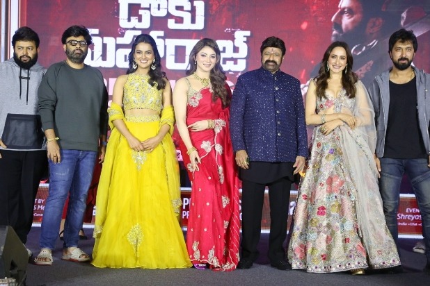 బాలకృష్ణ తాజా చిత్రం 'డాకు మహారాజ్' సంక్రాంతి కానుకగా రేపు విడుదల అవుతోంది. ఈ సినిమా టీజర్, ట్రైలర్లు అభిమానులను ఆకట్టుకున్నాయి. సినిమా ప్రీ రిలీజ్ ఈవెంట్ నిన్న హైదరాబాద్ లో జరిగింది.