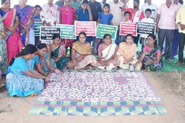 Sankranti: భూములు తీసుకోవద్దంటూ భోగి నాడు పొలాల్లో సకినాలు చేస్తూ నిరసన