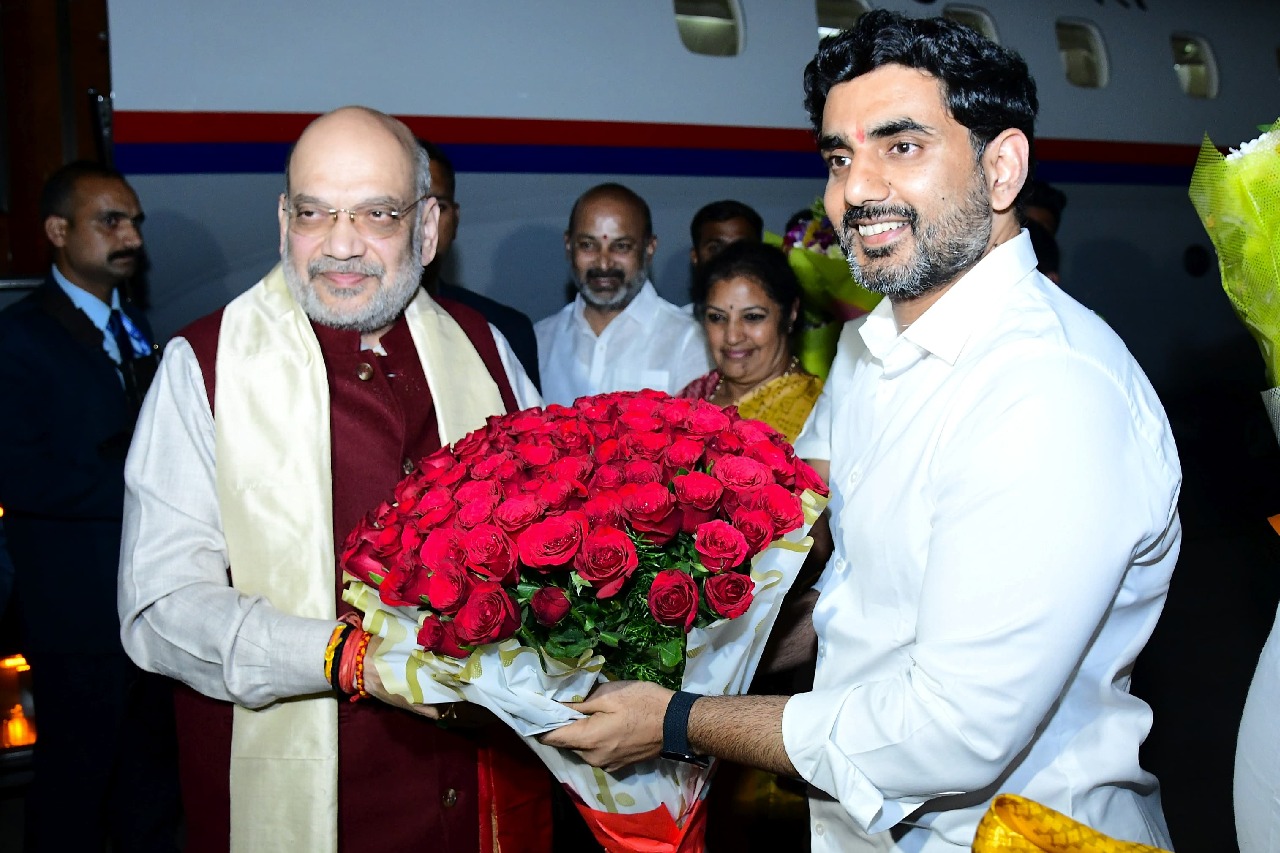 Amit Shah: గన్నవరం ఎయిర్ పోర్టులో అమిత్ షాకు స్వాగతం పలికిన నారా లోకేశ్