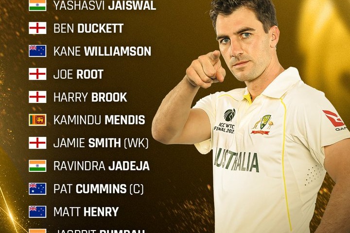 కాగా, ఈ ఐసీసీ టెస్ట్ టీమ్ కు ఆస్ట్రేలియా సారథి ప్యాట్ కమిన్స్ ను కెప్టెన్ గా ఎంపిక చేశారు.
