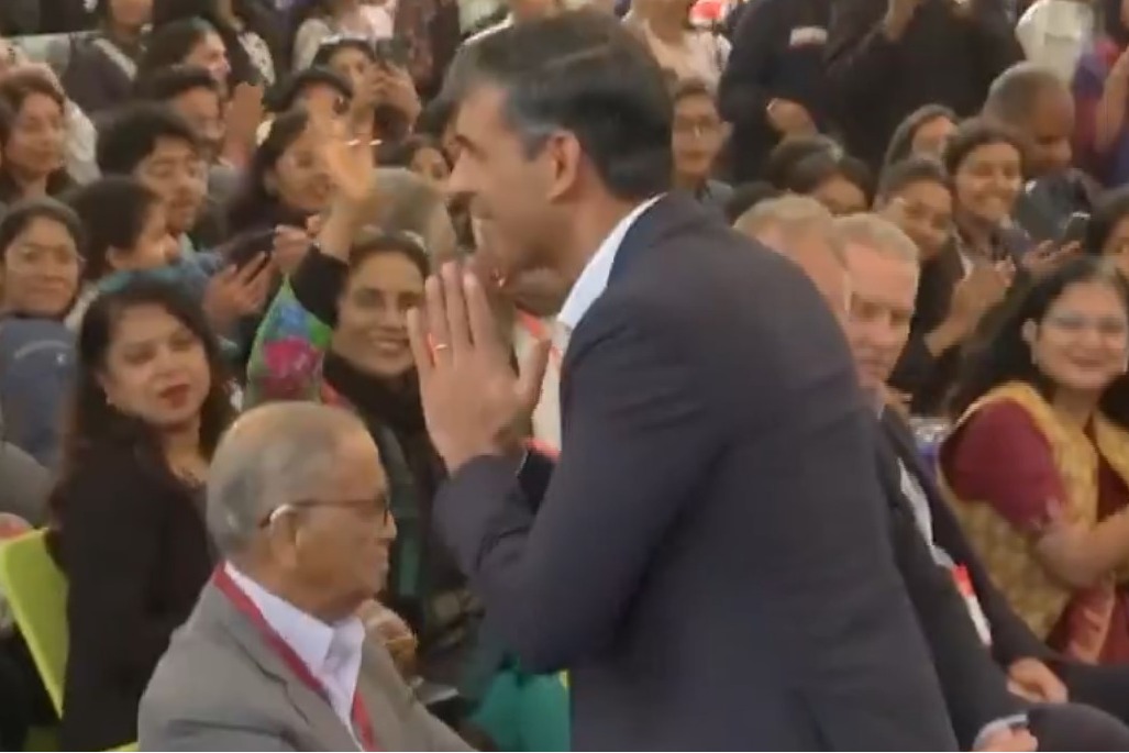 అయితే పక్కనే కూర్చున్న సుధామూర్తి సోదరి సునందా కులకర్ణి ఆయనను వారించారు. అలా కాకుండా, లేచి అందరికీ నమస్కారం చేయాలని సూచించారు. దీంతో రిషి సునాక్ వెంటనే లేచి అందరికీ నమస్కరించారు. అనంతరం వారిద్దరూ సరదాగా నవ్వుకున్నారు. ఈ సంఘటనకు సంబంధించిన వీడియో ప్రస్తుతం సామాజిక మాధ్యమాల్లో వైరల్ అవుతోంది.